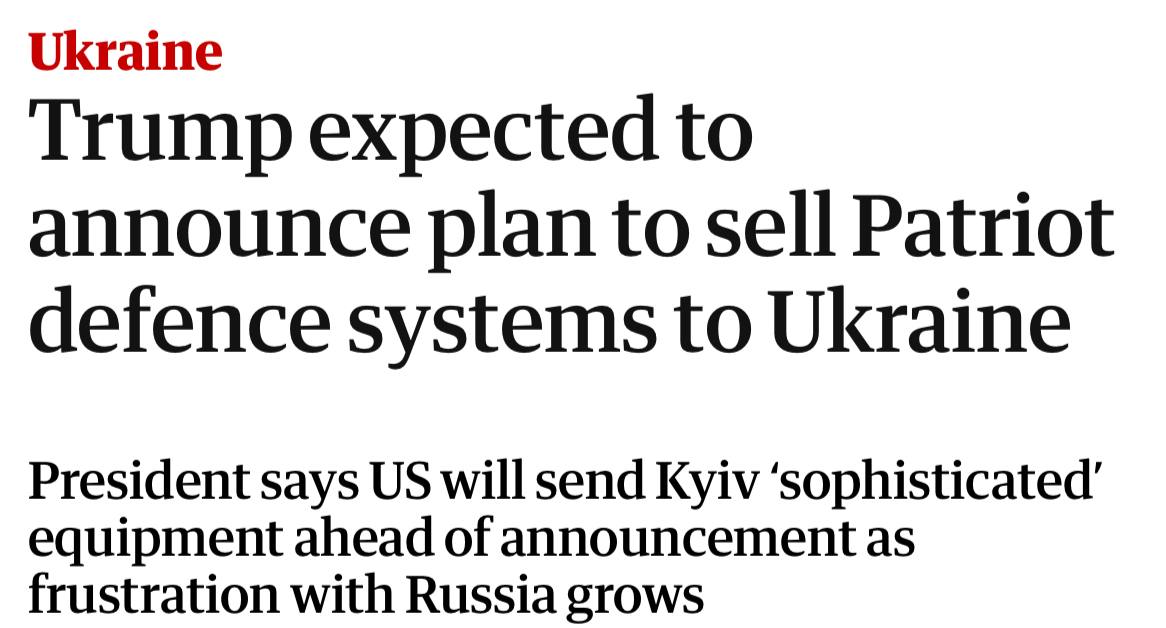 «Хотя Трамп точно не объявил, кто будет финансировать покупки, ожидается, что будут задействованы европейские страны. На прошлой неделе канцлер Германии Мерц заявил, что Берлин "готов приобрести" дополнительные системы Patriot»,