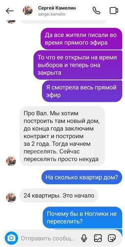 Дети помогают пенсионерке своими силами, в частности, ежегодно перекрывают крышу. Но администрация района отказывается возместить даже эти расходы и просит подождать два года, в течение которых, как сообщил мэр Ногликского района Сергей Камелин, в селе будет построен новый дом на 24 квартиры. Телеграм-канал Валерия Лимаренко в переписке с соавтором и вовсе сообщил, что строительство будет в 2024‑2025 годах "при наличии финансирования".