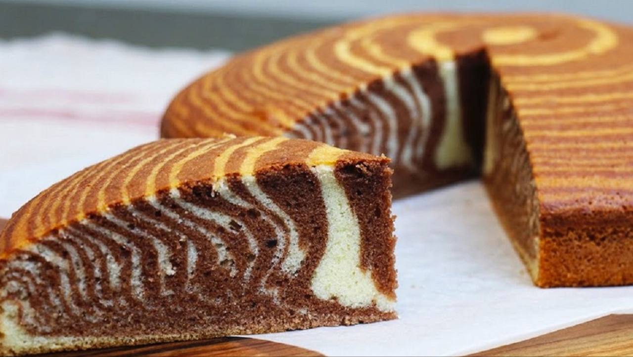 2. Отделите половину теста и добавьте в него какао. Хорошенько перемешайте. Форму для выпечки застелите фольгой и смажьте сливочным маслом. В центр налейте немного белого теста, потом темного. И так продолжайте по ложке лить тесто, чередуя, пока оно не закончится. Зубочисткой проведите линии от центра к краям. Получается красивый рисунок.