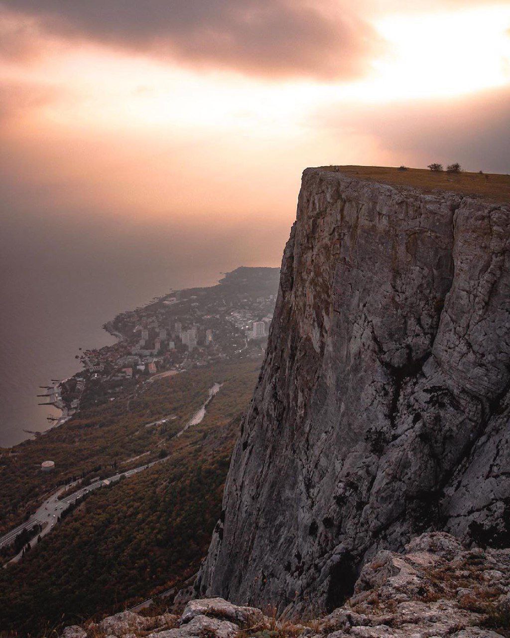 Южный склон Канта представляет собой отвесную стену высотой более 250 метров, которая увенчана почти идеально ровной площадкой на вершине. Отсюда открывается панорама на Форос и Санаторное.