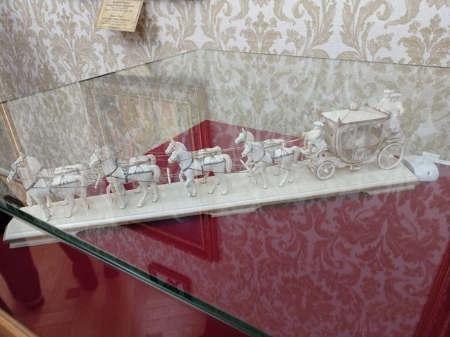 Еще одна реликвия, связанная с именем императрицы, — это ее кортеж, выполненный из бивня мамонта. Его стоимость — несколько миллионов рублей.
