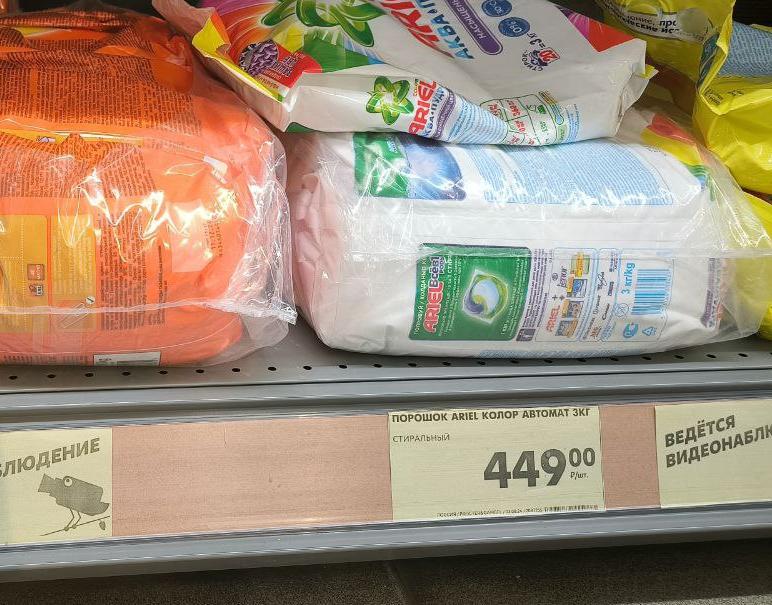 Причем странные цифры можно увидеть даже для порошка одной марки. Вот «Биолан» в 2023 году в «Находке» продавался за 499,89 рубля – это 5,4 кг. В 2025 году продается пачка 6,3 кг за 599,9 рубля. Насколько выросла цена и изменилась ли вообще? Сложно ответить. Надо считать. У меня получилось, что 6,3 кг порошка в 2023 году стоили около 583,3 рубля, то есть цена за два года выросла на 16 рублей.