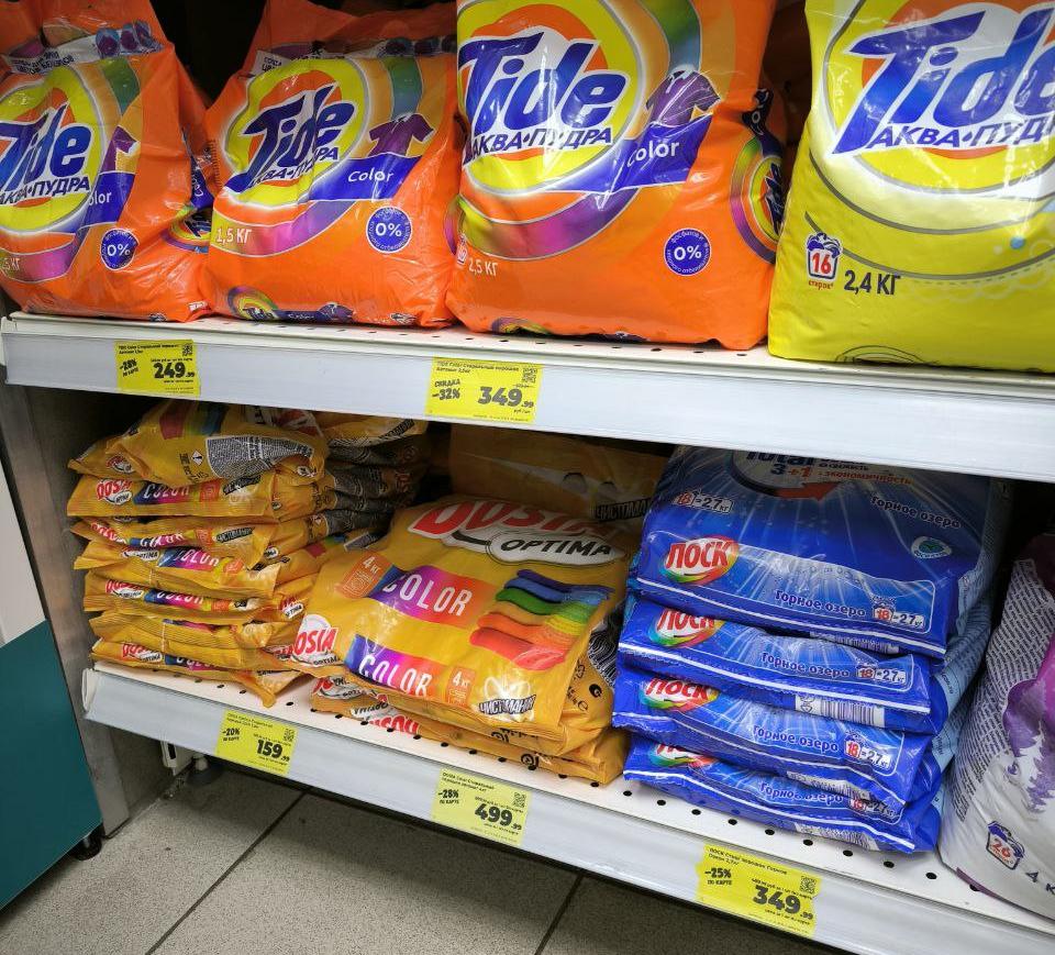 Кроме того, можно заметить, что довольно сложно сравнить цены на стиральный порошок, так как по объему он может быть вообще любым. Так, в «Магните» продаются порошки: 2,4 кг; 2,5 кг; 2,7 кг; 4 кг; 1,2 кг; 1,5 кг. Я не умею считать в уме такие сложные математические примеры, когда стою в магазине.