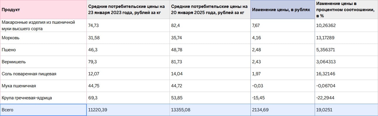 Данные Башстата показали – поднялись в цене почти все продукты (сравниваем статистику на 23 января 2023 и 20 января 2025 года). Даже соль стала дороже почти на 2 рубля. Самое большое изменение стоимости у сливочного масла, сыра, колбас, детских сухих смесей, баранины – цены стали больше на 100-300 рублей в расчете на килограмм.