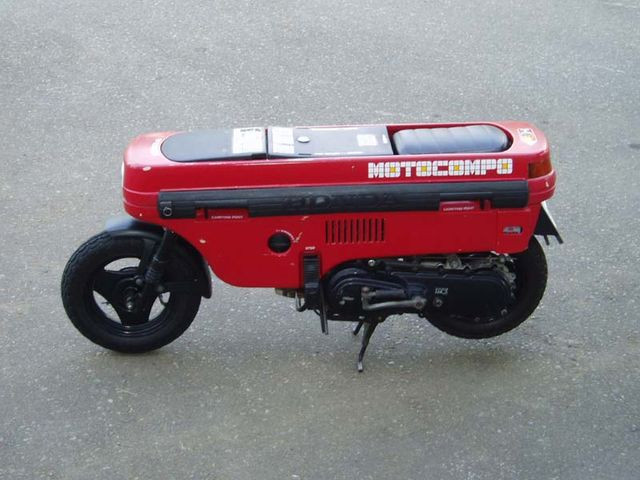 Этот ультракомпактный мокик обладал двухтактным мотором объемом 50 кубиков, мощностью 2,5 силы и 8-дюймовыми колесиками; он был способен разгоняться до 40 километров в час. В корпус мопеда в транспортировочном положении убирались руль и седло (руль складывался, а седло просто опускалось, после чего верхние крышки еще и запирались на ключ), и получался «брикет» с габаритами 1185×240x540 мм. Весил он 42 килограмма – взрослый мужчина вполне мог поставить его в багажник Honda City в одиночку и в одиночку же извлечь.