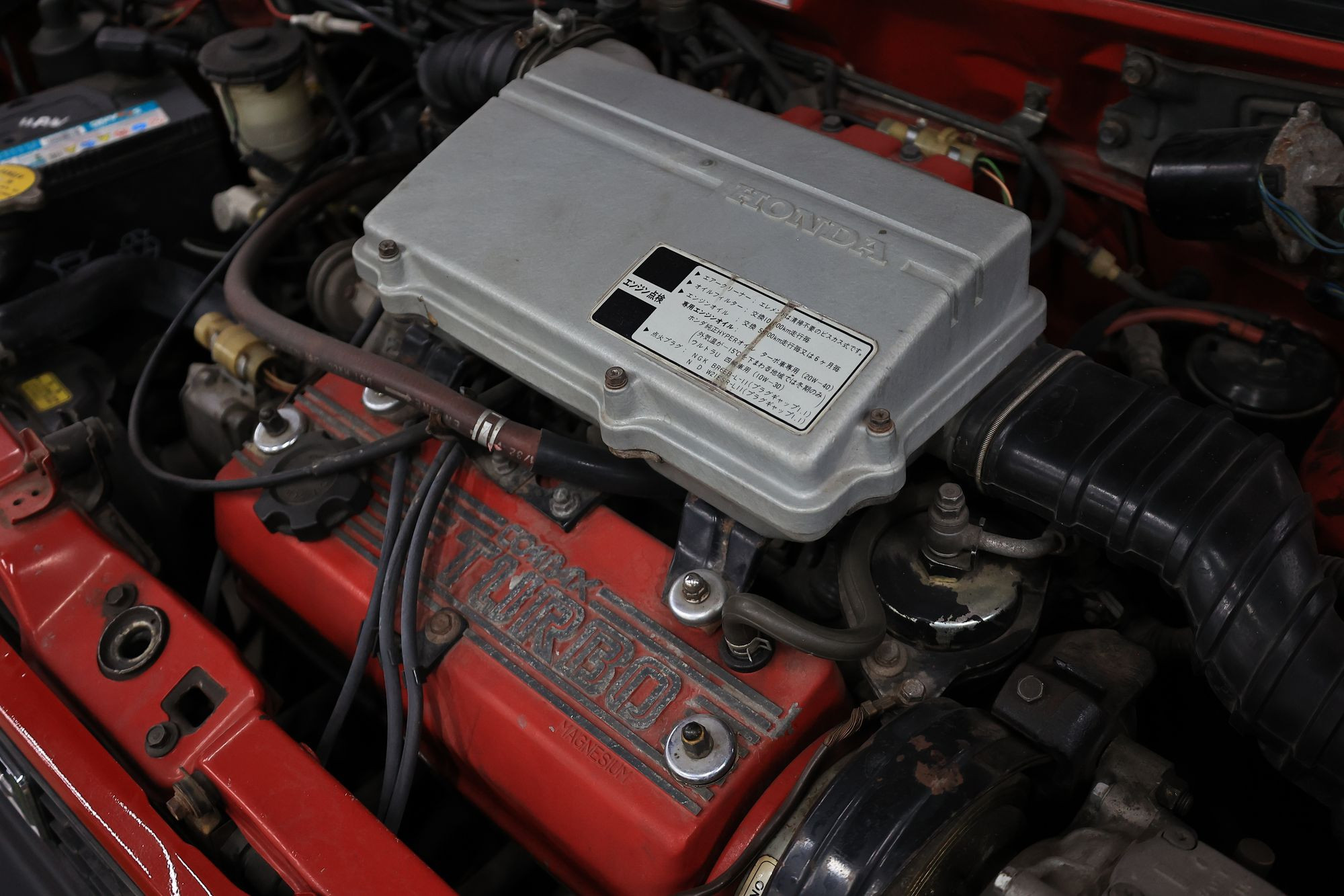 Мотор City Turbo – 1,2-литровый ER, 100-сильный, 4-цилиндровый, 12-клапанный и, естественно, турбированный. Он оснащен распределенным впрыском, ременным ГРМ и, что характерно для инженерных канонов Honda, не имеет гидрокомпенсаторов. Интеркулер, как уже упоминалось, ввиду невысокой мощности двигателя и невысокой производительности турбинки тут отсутствует – промежуточное охлаждение наддувного воздуха появилось лишь у обновленного 110-сильного Turbo II, вышедшего в рамках того же первого поколения City.