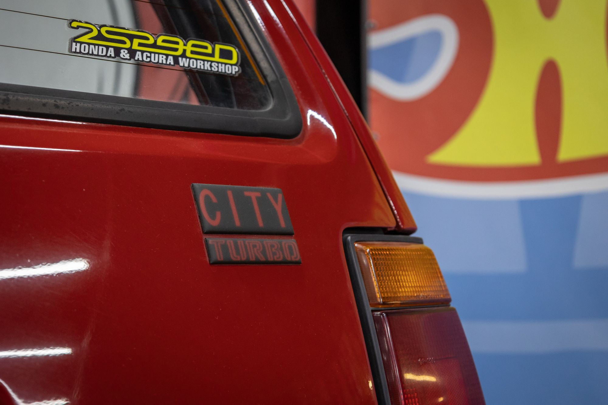 Версию Turbo легче всего узнать по асимметричной укороченной радиаторной решетке с одноименным шильдиком (у атмосферных City решетка длинная, от фары до фары), а также по крупной нашлёпке на капоте. Это не воздухозаборник для интеркулера, как можно подумать (интеркулер тут в принципе отсутствует), а проставка, позволяющая разместить под капотом City Turbo впрысковый мотор, у которого, в отличие от карбюраторного на обычных City, высота увеличилась за счет ресивера и корпуса воздушного фильтра.