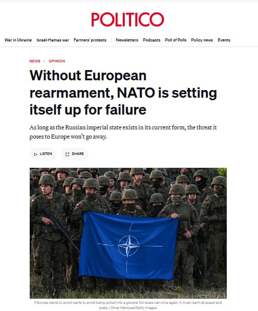 Politico: без перевооружения Европы НАТО обрекает себя на провал
