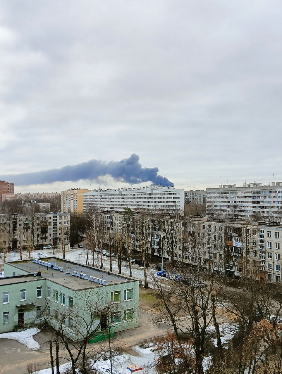 Днем в воскресенье, 10 марта, жителей Петербурга встревожил столб черного дыма в небе над городом. Фотографии и видео «Фонтанке» прислали читатели.