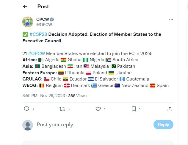 ❗️ Россия не получила место в исполнительном совете Организации по запрещению химического оружия.