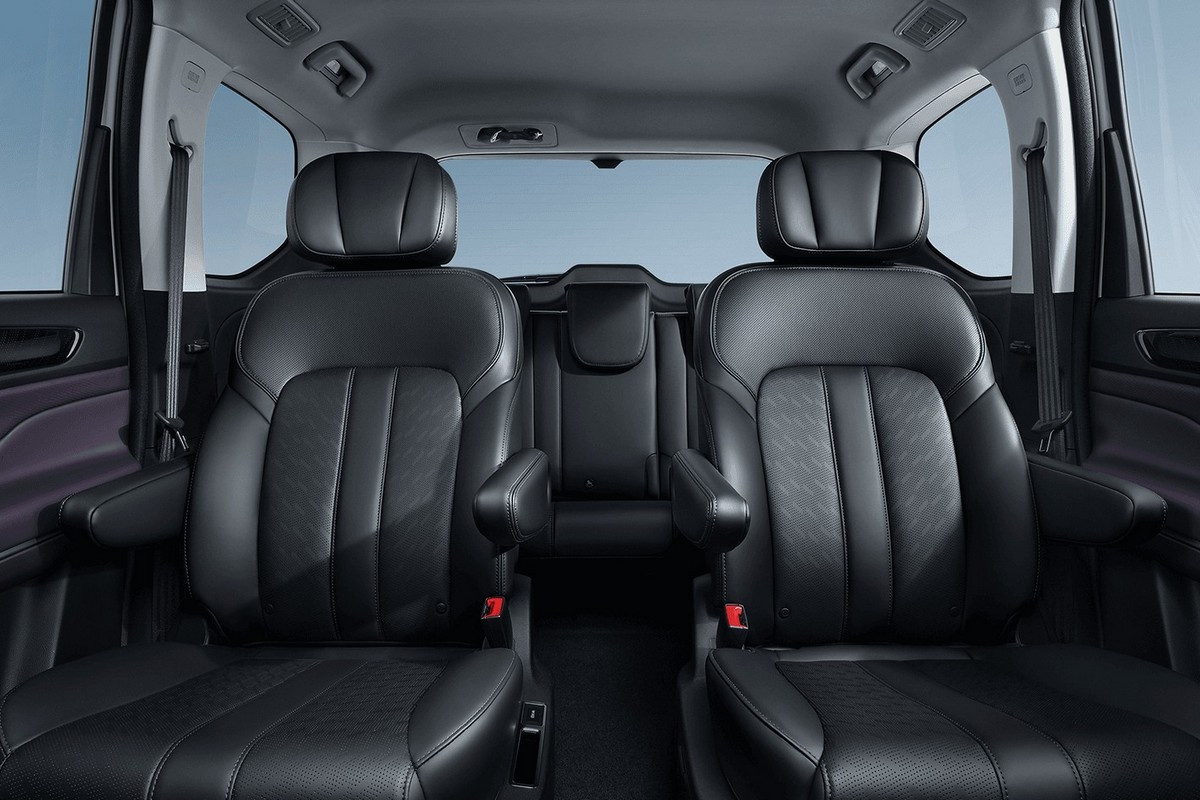 GAC Trumpchi M6 Max получил еще более внушительный «гриль»: радиаторная решетка стала шире, сверху появились две массивные серебристые накладки, по бокам – крупные «бумеранги». Минивэну также достались новые 18-дюймовые диски, плюс он по умолчанию имеет матричные фары (у M6 Pro такая оптика идет начиная со второй по старшинству комплектации). А вот габариты по сравнению с Pro-версией не изменились: длина – 4793 мм, ширина – 1837 мм, высота – 1765 мм, колесная база – 2810 мм.