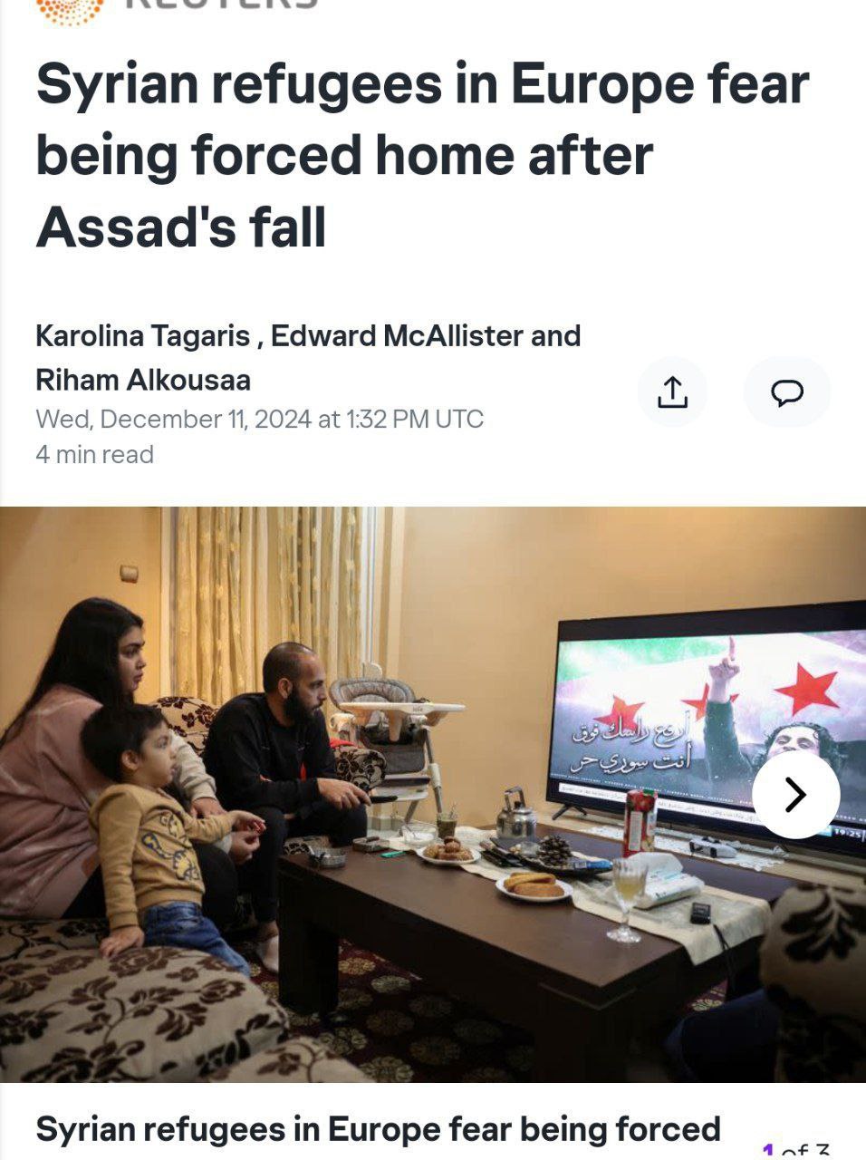 Сирийские беженцы, приехавшие в Европу, потому что жить при Асаде было плохо и опасно, теперь не хотят возвращаться домой, в Сирию потому, что боятся жить в Сирии после свержения Асада. Мол, очень опасно теперь там.
