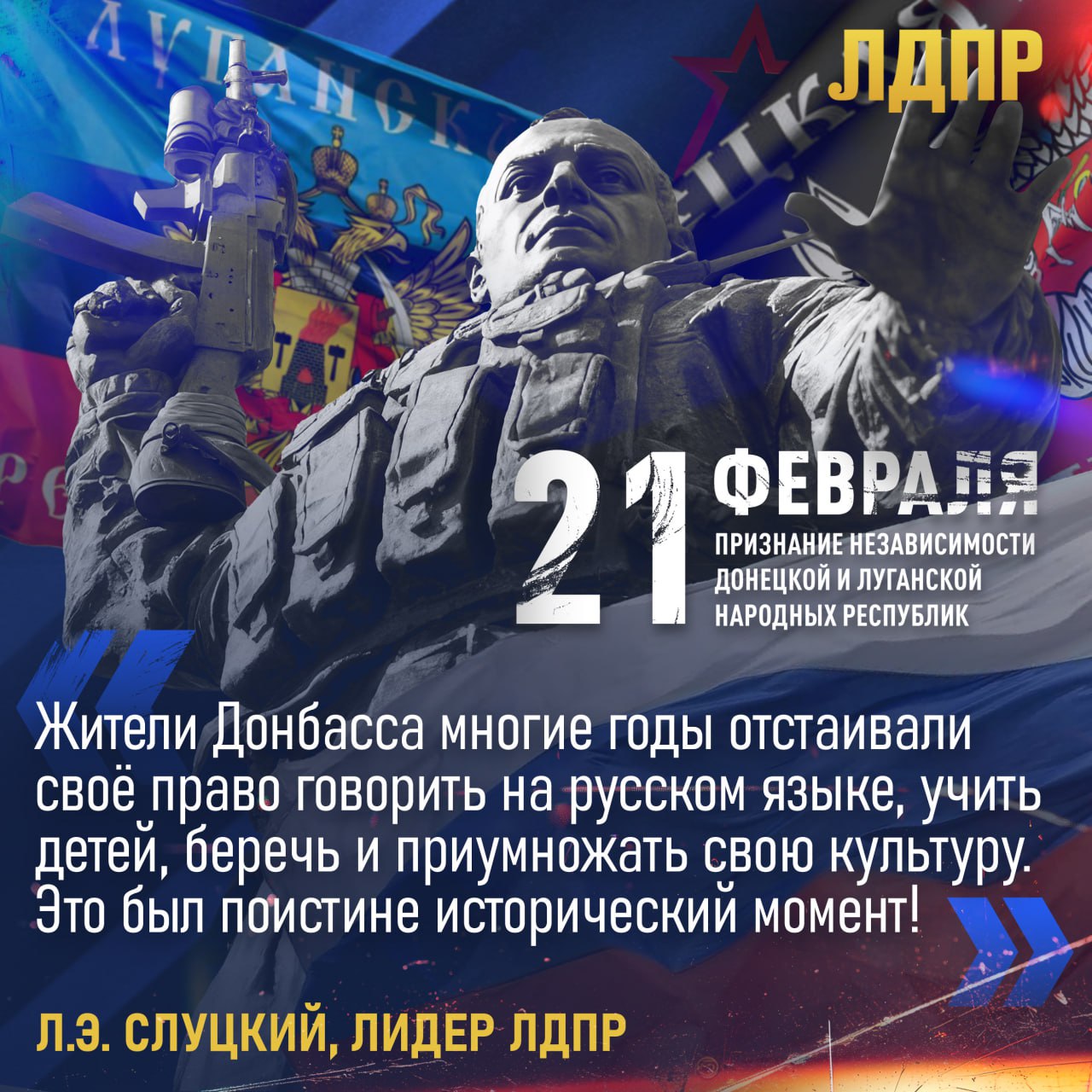 Поздравляю всех нас с третьей годовщиной признания Россией республик Донбасса!
