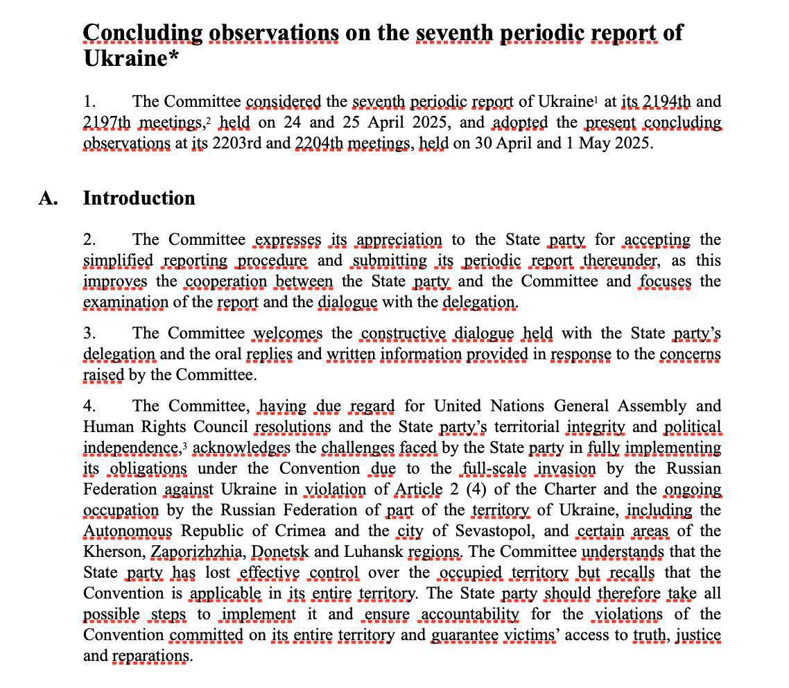 Комитет ООН против пыток опубликовал доклад по Украине - куда включил сообщения о пытках, сексуальном насилии и жестоком обращении против гражданских лиц, подозреваемых в «коллаборационизме или угрозе нацбезопасности»