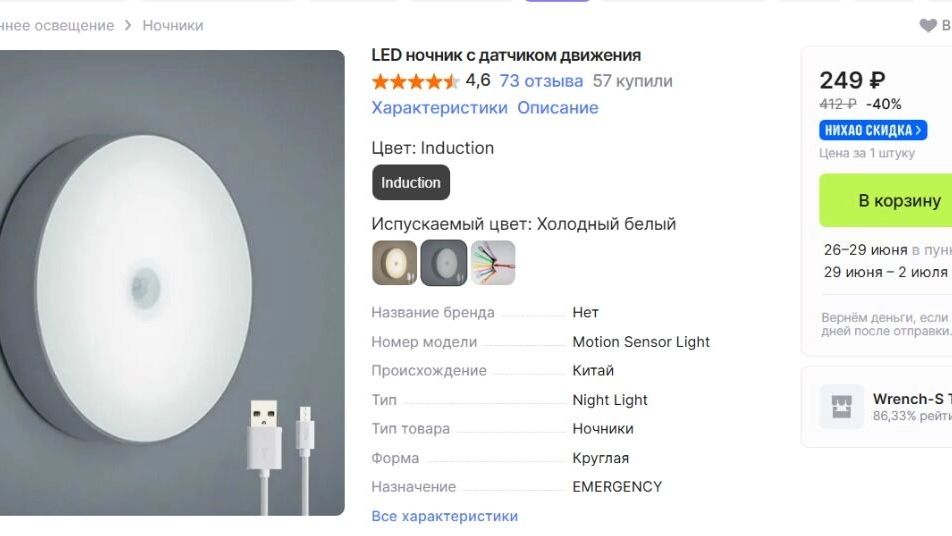 Этот компактный светильник с мягким тёплым светом был установлен над чайником — специально для того, чтобы ночью можно было налить воду, не включая основное освещение. Также хорошо работает в коридоре: включается одним нажатием, светит достаточно мягко и не раздражает глаза.