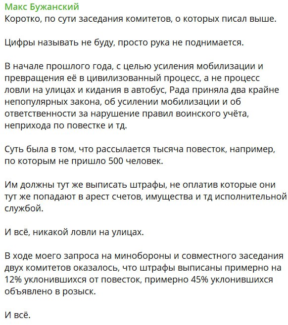 «В ходе моего запроса на Минобороны и совместного заседания двух комитетов оказалось, что штрафы выписаны примерно на 12% уклонившихся от повесток, примерно 45% уклонившихся объявлено в розыск.