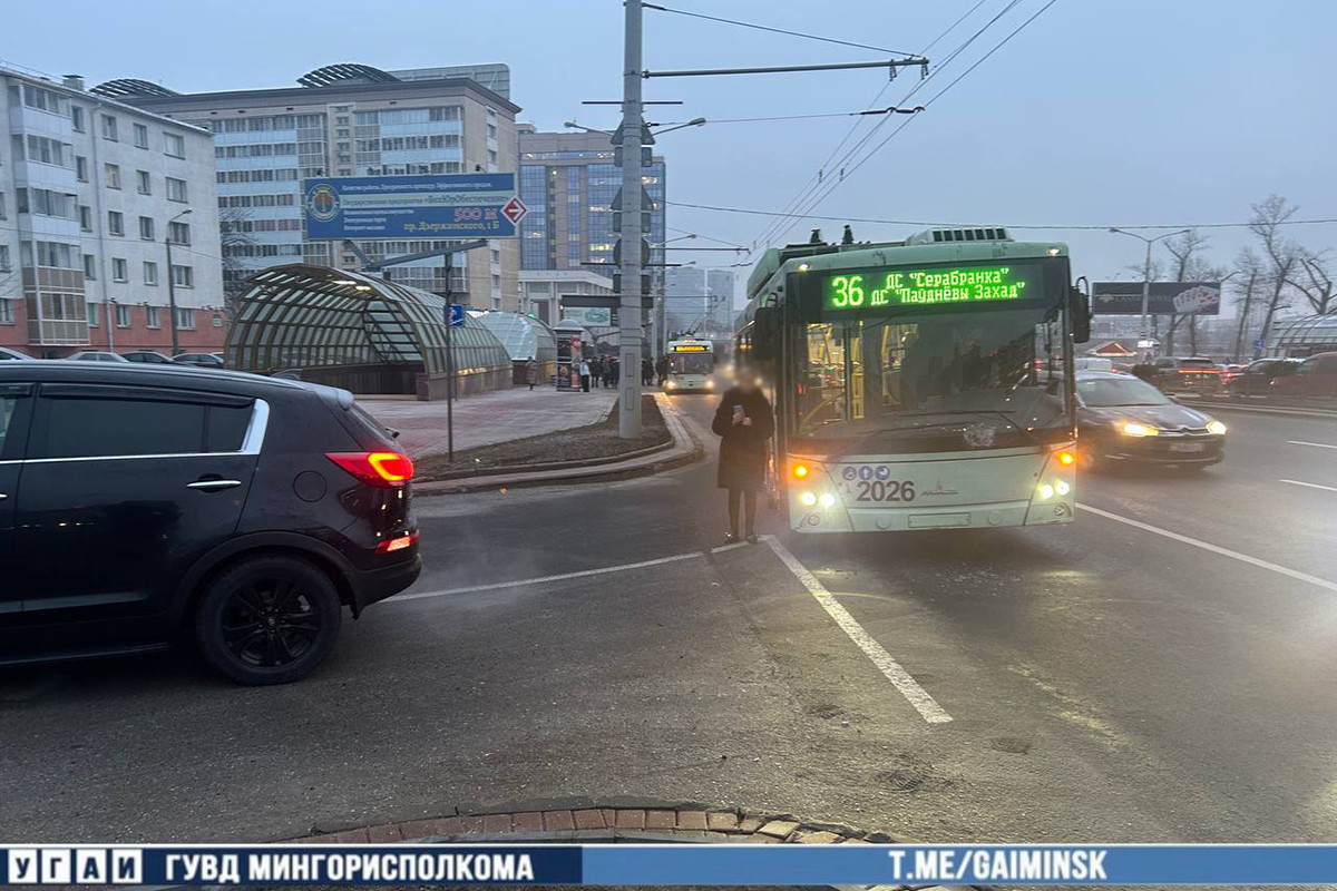 «48-летняя водитель Kia, двигаясь по проспекту Дзержинского, при повороте направо на улицу Розы Люксембург не предоставила преимущество и совершила столкновение с попутно двигавшимся троллейбусом. Женщина осуществляла поворот со второй полосы движения, чем нарушила требования дорожного знака», — изложили предварительную версию в ГАИ Минска.