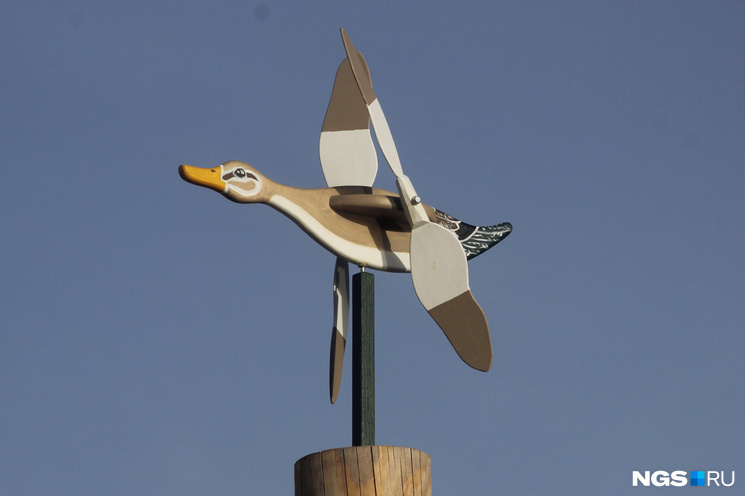 На парк выделили более 300 миллионов рублей, уже построили мост и несколько дорожек, сохранили затопляемость территории, установили арт-объект — стаю деревянных уток-ветряков на высоких столбах. Сейчас зеленая зона готова больше чем на половину, горожане уже гуляют по территории.