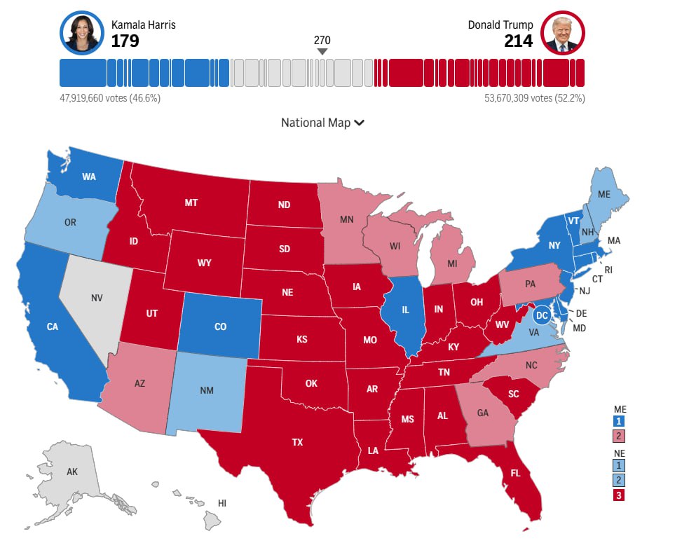 штаты Калифорния, Орегон и Вашингтон помогают Камале Харрис сократить отставание.