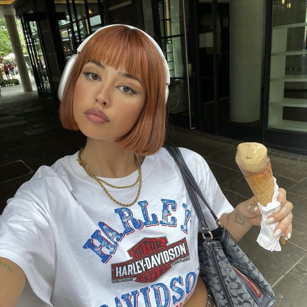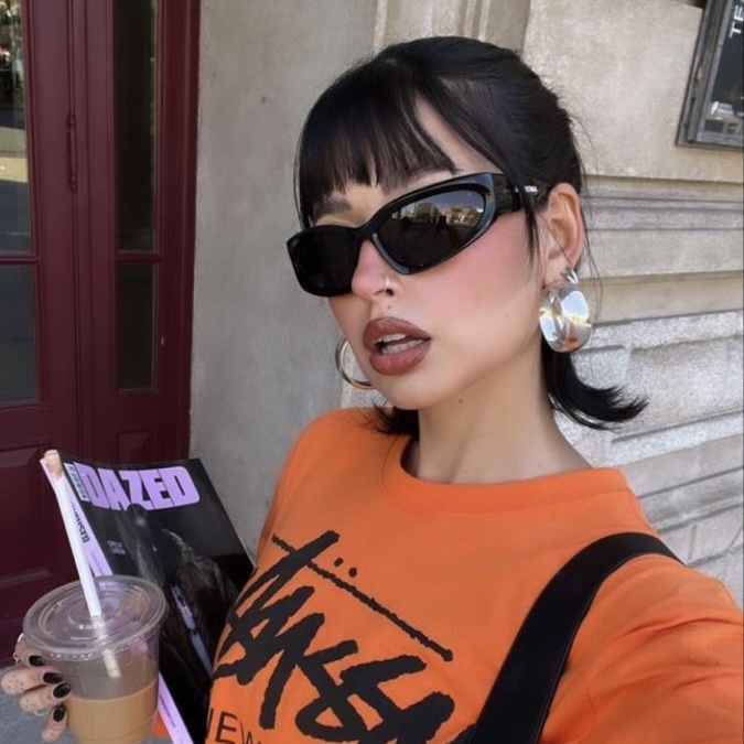 Модель поделилась фотографией со съемок миланского бренда Miss Sixty и показала «рваную челку». Это стрижка с мягкими слоями и чуть неровными концами, доходящими чуть выше бровей. Она напоминает челку «почтовый ящик», но выглядит эффектнее за счет многослойности.
