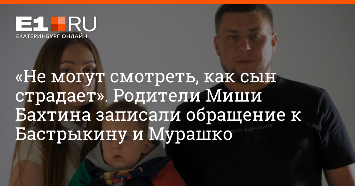 Родители Миши Бахтина записали видеообращение к главе Следственного комитета России Александру Бастрыкину и министру здравоохранения Михаилу Мурашко. Яна и Дмитрий попросили обеспечить их ребенка лекарственным препаратом, а также наказать должностных лиц, по чьей вине мальчик уже больше года остается без лечения.
