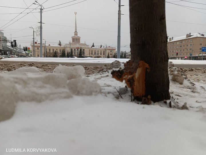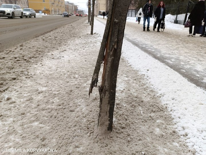 Новостной портал «Фактор» сообщил, что на проспекте Ленина в самом центре Петрозаводска, возле университета, снегоуборочная техника изуродовала деревья.