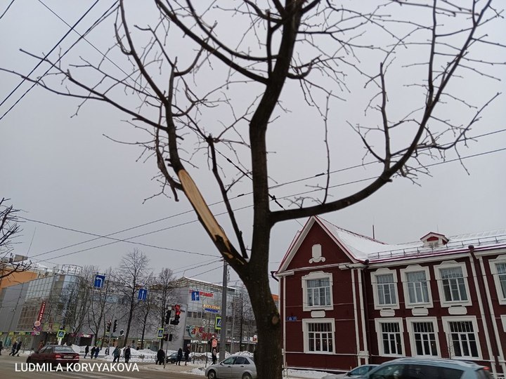 Горожане отметили, что от ПетрГУ до железнодорожного вокзала практически не осталось целых деревьев. Многие растения могут не восстановиться после таких повреждений.