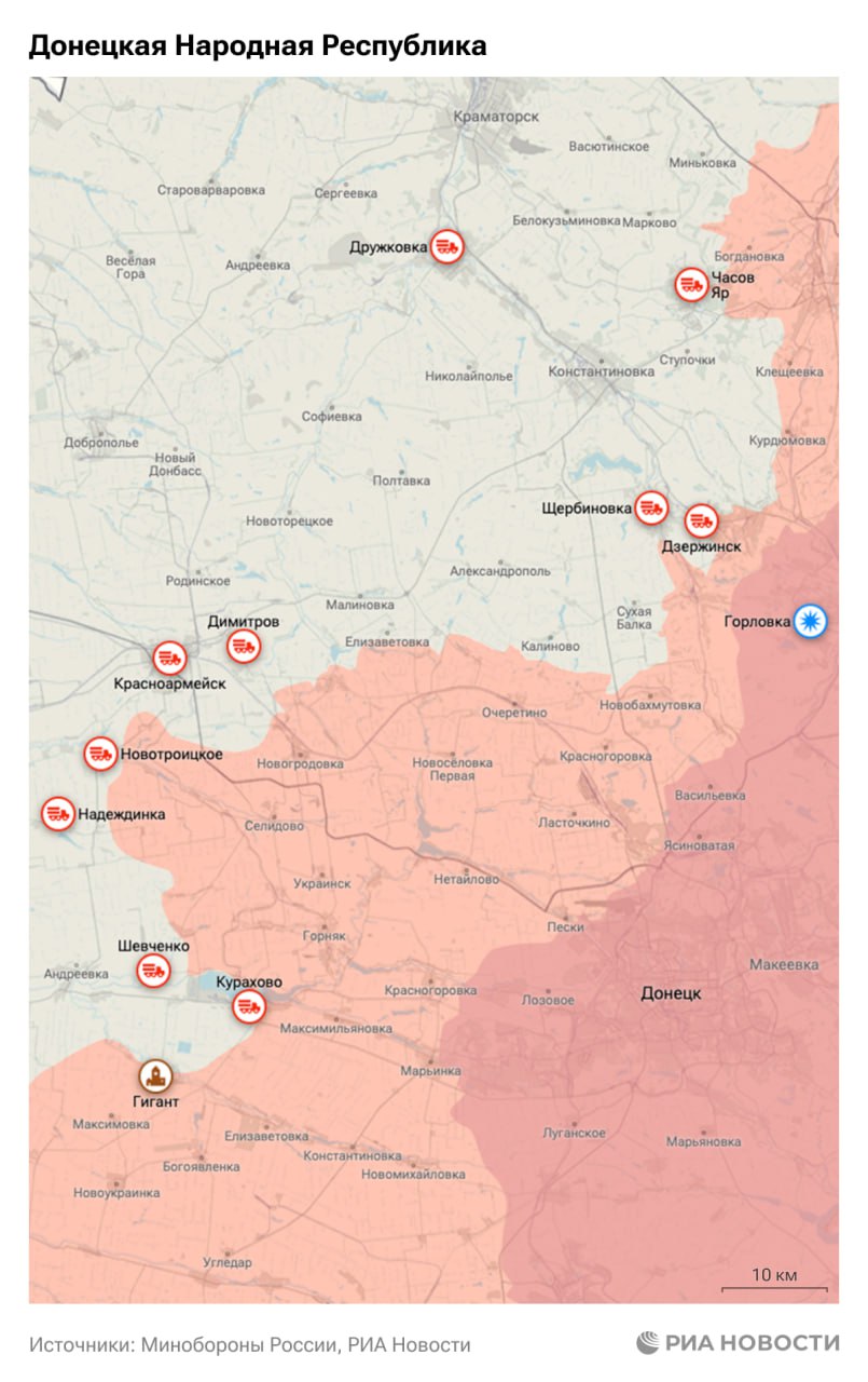 ▪️Российские военные взяли под контроль населенный пункт Гигант в ДНР, сообщило Минобороны;