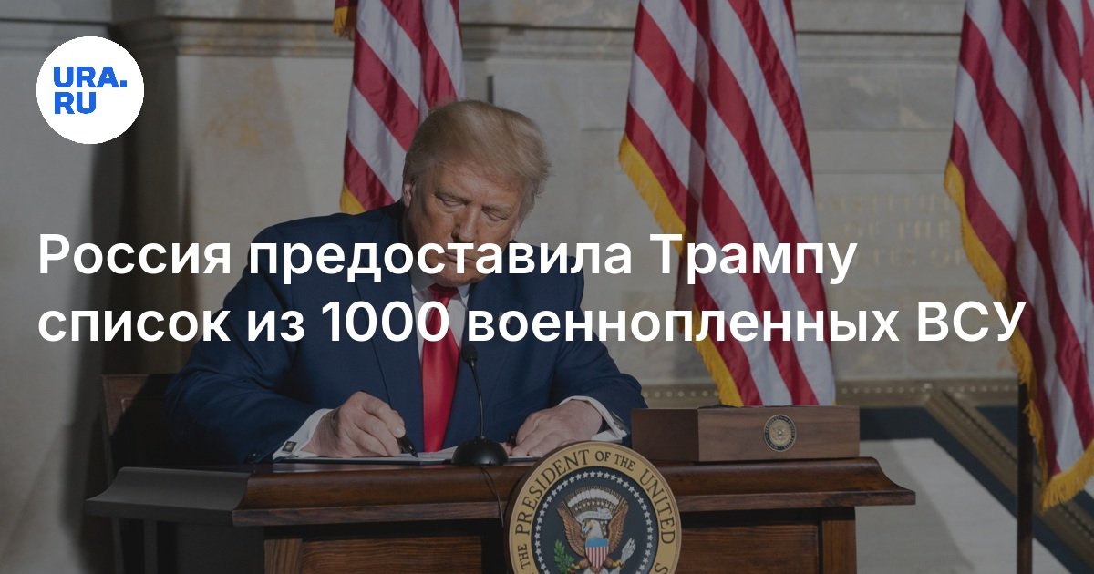Россия передала США список из более тысячи украинских военнопленных для возвращения на Украину. Об этом сообщил президент США Дональд Трамп в эфире телеканала Fox News. По его словам, российская сторона предоставила перечень пленных, которых Киев должен согласиться их принять.