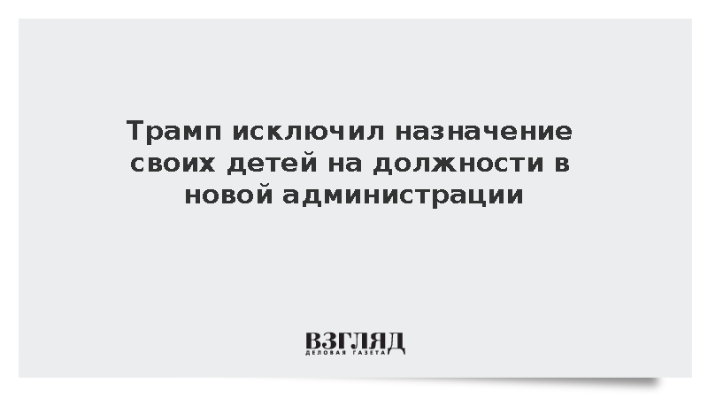 Дональд Трамп, назвавший себя победителем выборов в США, сообщил, что его дети не будут назначены на должности в новой администрации, так как предыдущий опыт оказался слишком тяжелым для семьи, сообщает NBC News.