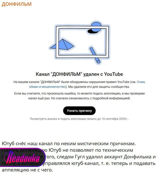 Очередное доказательство русофобской политики Youtube — видеохостинг удалил канал первой донбасской киностудии «Донфильм», которая снимала фильмы на собственные деньги