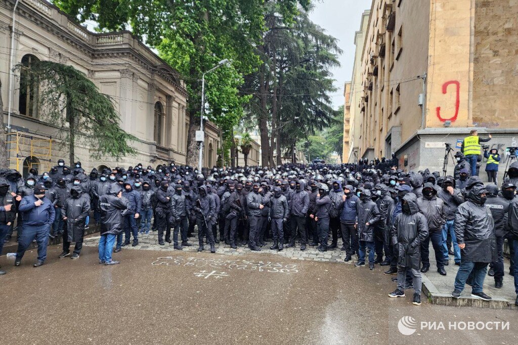 Ранее демонстрантов, протестующих против принятия закона об иноагентах, от парламента оттеснили.