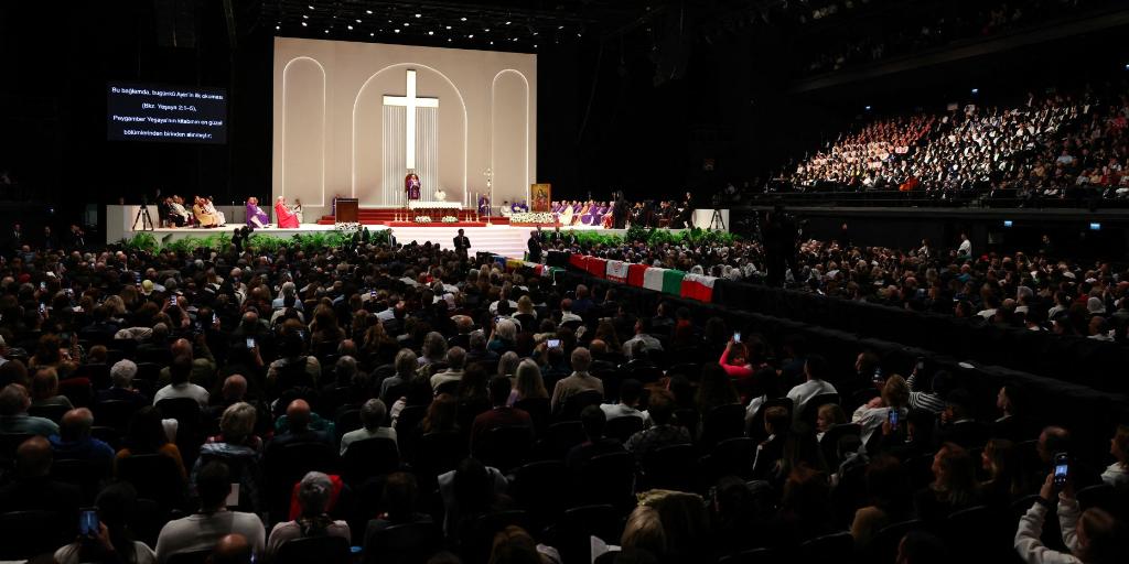 En la misa de León había unas 4.000 personas, cuatro veces más que en las que celebraron en este país sus predecesores Benedicto en 2006 y Francisco en 2014. Entonces las misas tuvieron lugar en la catedral del Espíritu Santo, y esta vez en un pabellón deportivo. La mayoría de los peregrinos eran católicos, pero también había representantes de Iglesias cristianas e incluso musulmanes que colaboran con instituciones católicas o tienen familia católica. También había varias familias españolas, militares residentes en la base de la OTAN de Izmir.