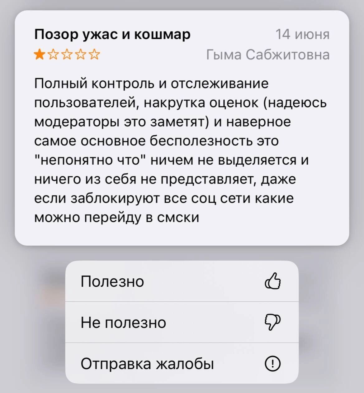В App Store приложение собрало 80 тысяч оценок и общий рейтинг — 4.2. Основные претензии — к тому, что приложение якобы сливает данные государству, интерфейс похож на Telegram, а положительные отзывы — накручены.