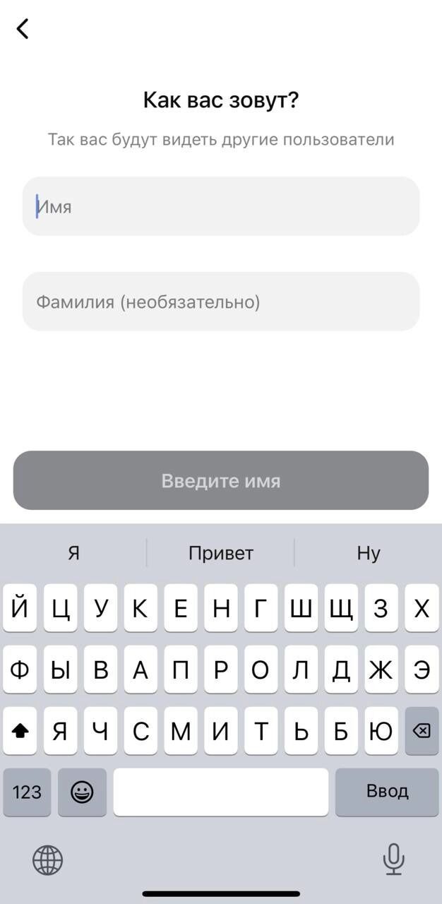 - Ввести имя пользователя. Фамилию, как написано в самом приложении, писать необязательно.