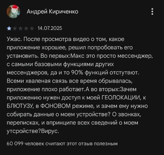 Чтобы понять, как к национальному мессенджеру относятся россияне, мы зашли почитать отзывы на приложение в разных магазинах приложений.