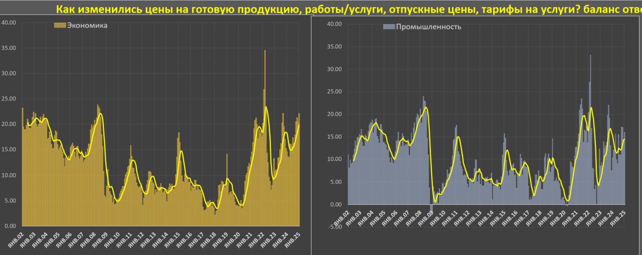 В январе ценовые ожидания на следующие три месяца по российскому бизнесу среди всех секторов экономики достигли уровней сен.24, когда ценовые ожидания уже были повышенными.
