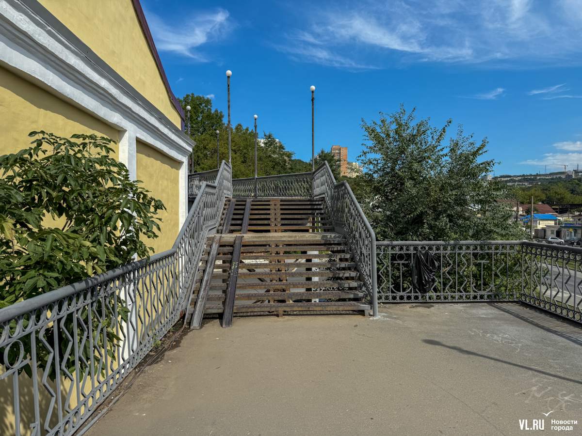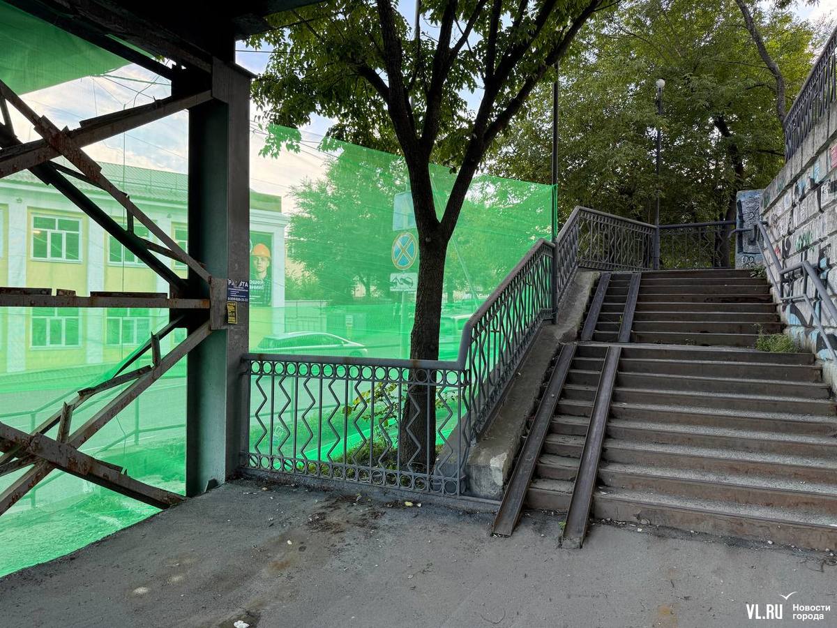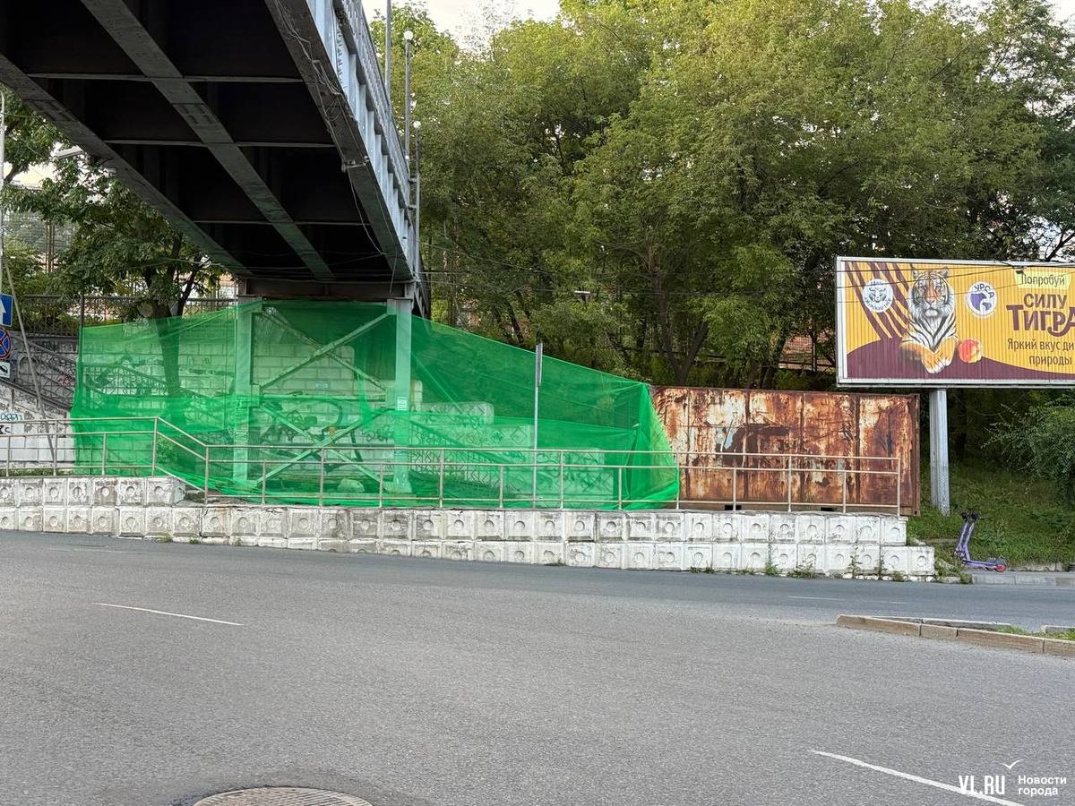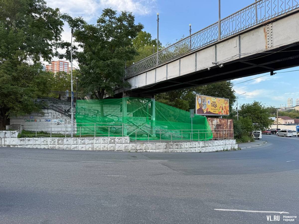 Во Владивостоке в районе школы №22 собираются провести ремонт виадука. Начать работы по графику должны были уже сегодня, но пока тут только появился контейнер, видимо, бытовка строителей, и зелёные оградительные сетки. Реконструкция надземного перехода продлится до середины октября, проход для граждан полностью закроют. Переходить придётся по «зебрам», которые находятся в 150 метрах от виадука по улицам Светланская и Луговая.