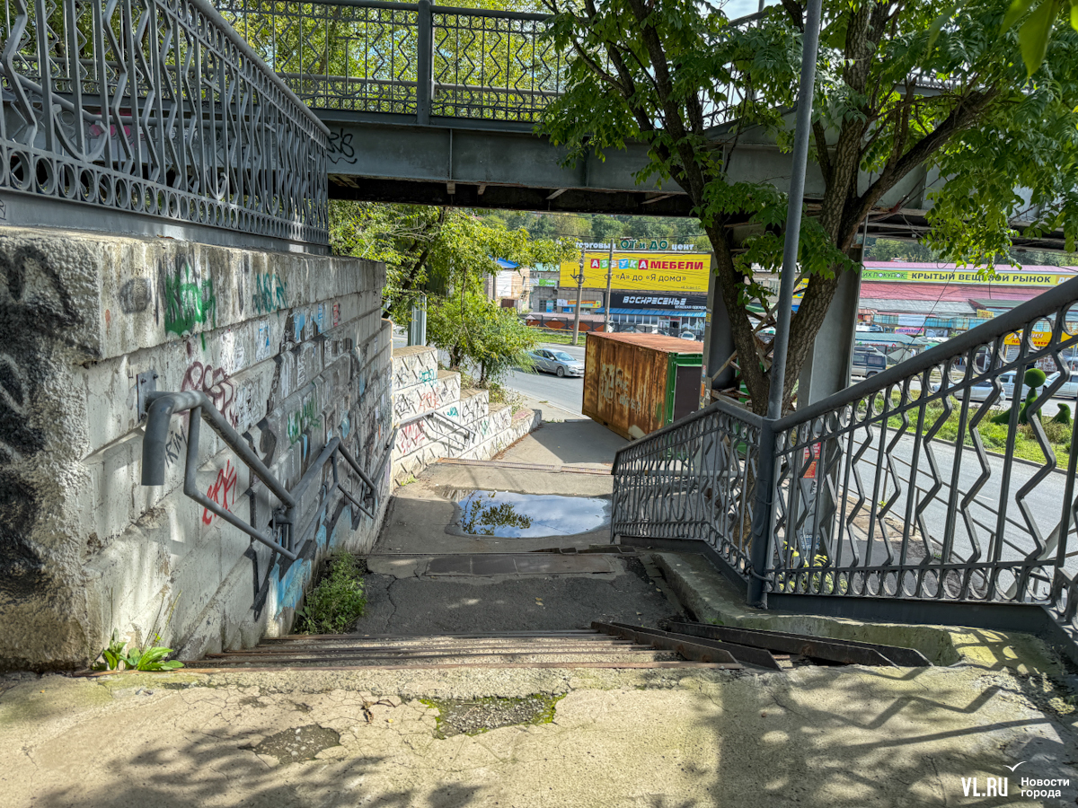 Начаться работы должны были сегодня, 8 сентября, однако пока проход открыт, а люди спокойно переходят улицу. Рабочих на виадуке нет, но следы их деятельности видны: со стороны школы на тротуаре установили железный контейнер, видимо, будущую бытовку, и обтянули лестницу со стороны дороги зелёной сеткой.