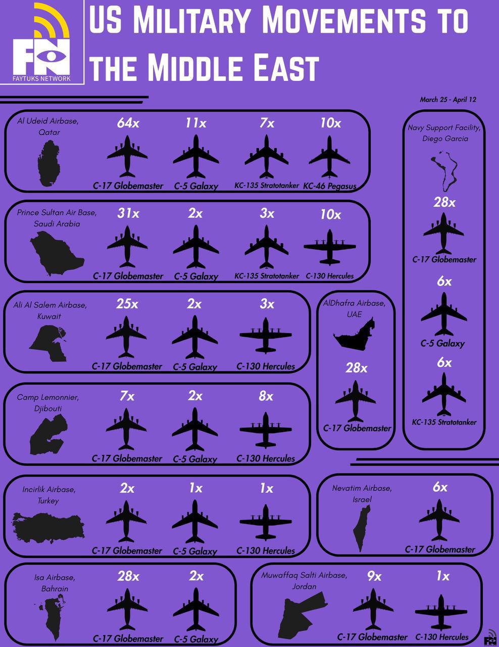 США перебрасывают в регион дополнительные военные грузы, боеприпасы, системы ПВО и оборудование.
