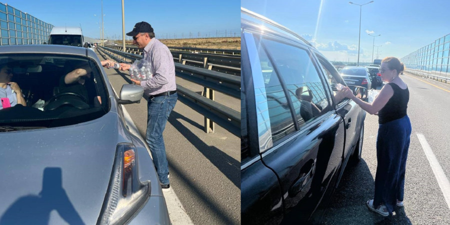 Они застряли в пробке из машин, въезжающих в регион по мосту через Керченский пролив и проходящих досмотр со стороны Краснодарского края.
