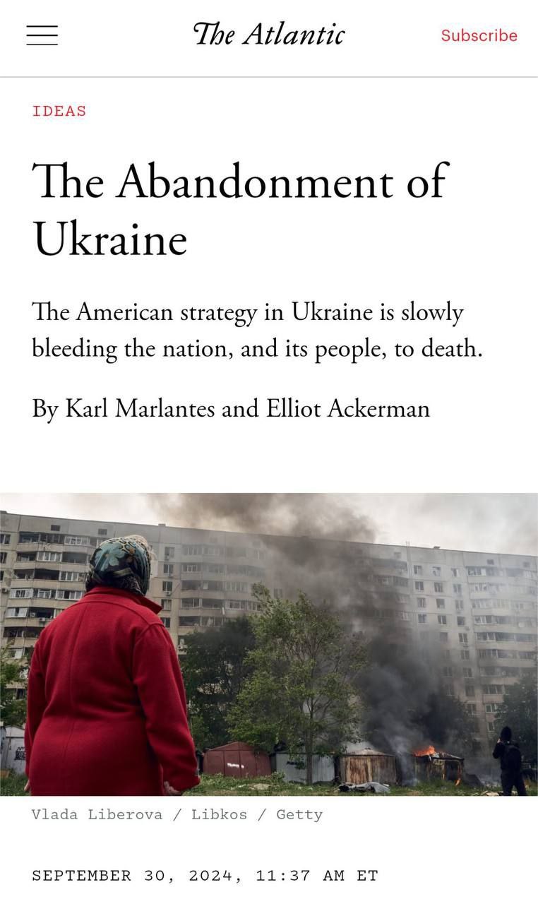 …самое тревожное, что мы увидели, - это американская стратегия в Украине, которая дает украинскому народу достаточно военной помощи, чтобы не проиграть свою войну, но недостаточно, чтобы ее выиграть. Эта стратегия медленно обескровливает Украину и ее народ.
