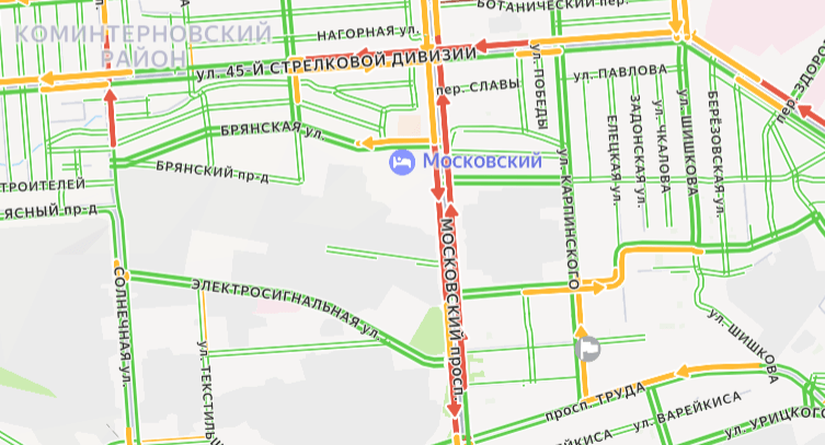 На месте также начинает скапливаться затор. Он тянется по Московскому проспекту от пересечения с улицей Алексея Геращенко до пересечения с Беговой.