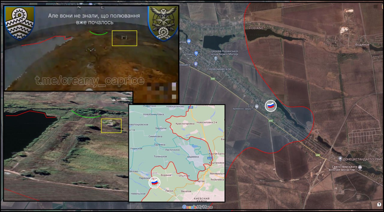 03,01,24 Авдеевка - Первомайское Позиционные боевые действия на южном охвате Авдеевки. Обстрел FPV-дроном ВСУ позиции ВС РФ на дамбе Измайловского ставка. 48.081679, 37.627391 Источник 21+ Геопривязка