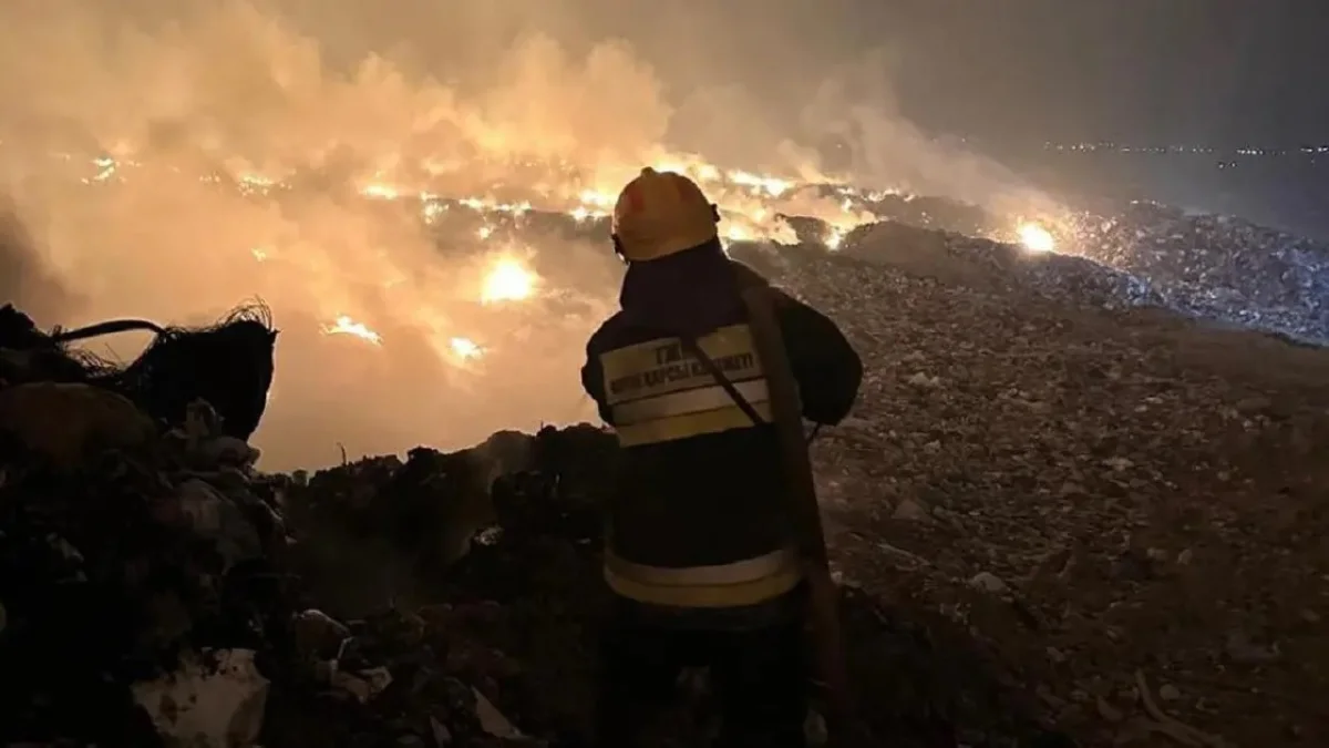 Стихия охватила 15 гектаров территории, заваленной бумагой, пластиком и химическими отходами. Плотная дымовая завеса накрыла населенные пункты поблизости: на улицах ощущается запах гари, видимость почти нулевая. Несмотря на дождь накануне, тление продолжается — очаги находятся на глубине более 10 метров.