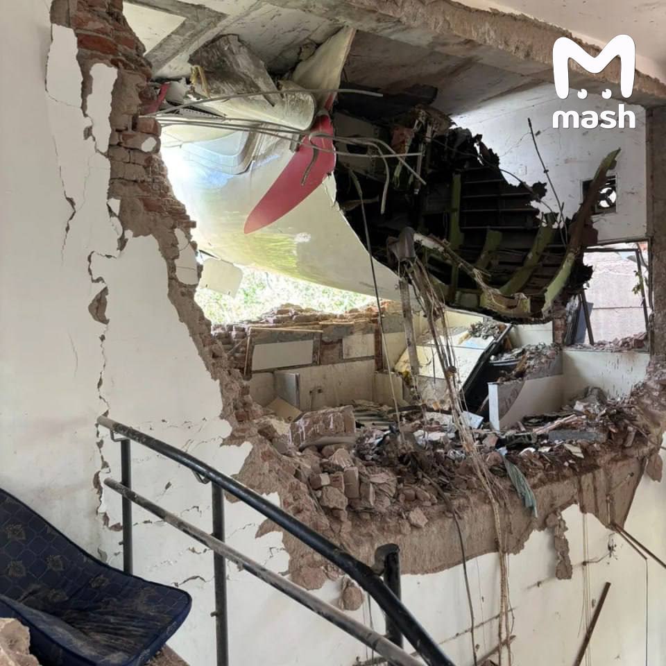 На кадрах — здание общежития для врачей, куда упали обломки самолёта.