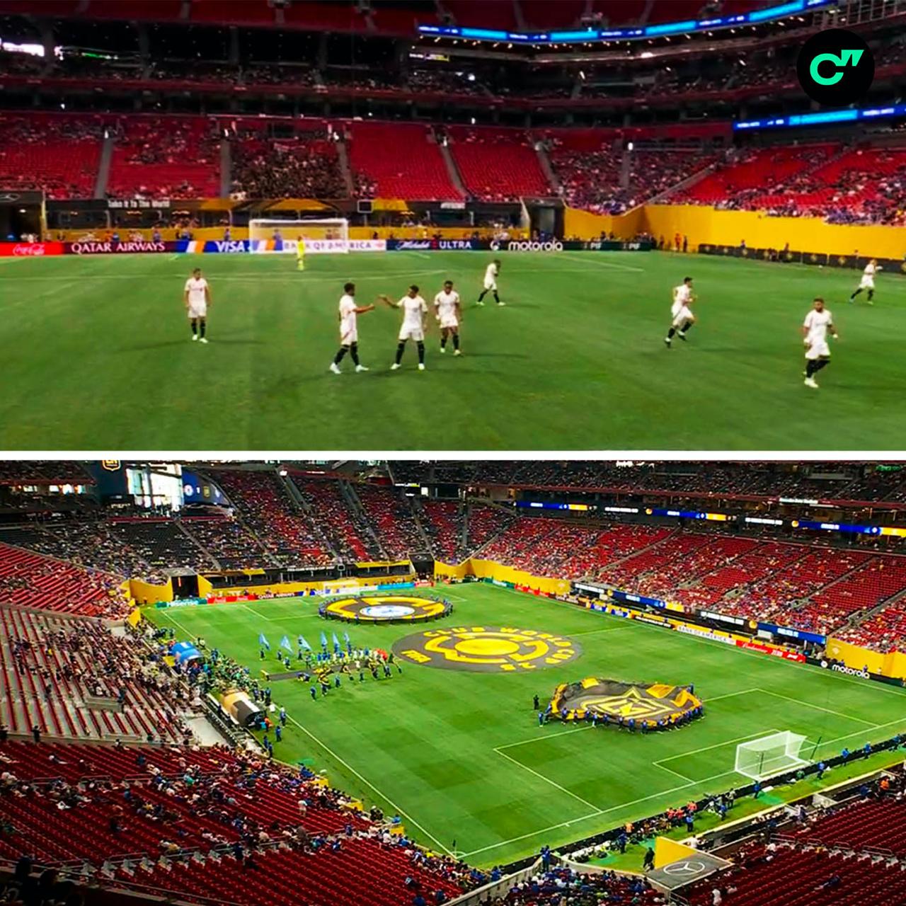 😳🔍 Пустые трибуны стадиона в Атланте перед стартовым свистком матча «Челси» и «Лос-Анджелеса» – «Мерседес-Бенц Стэдиум» вмещает до 75 тыс зрителей