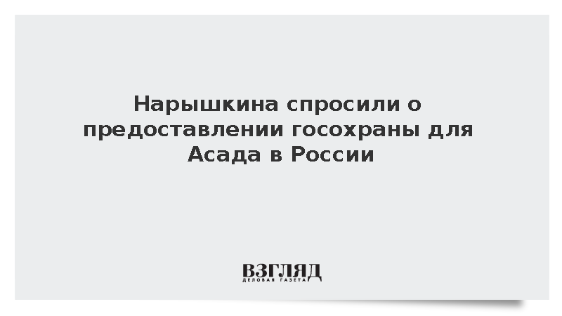 Директор Службы внешней разведки России Сергей Нарышкин сообщил, что не обладает информацией о предоставлении Башару Асаду государственной охраны в России, передает ТАСС.