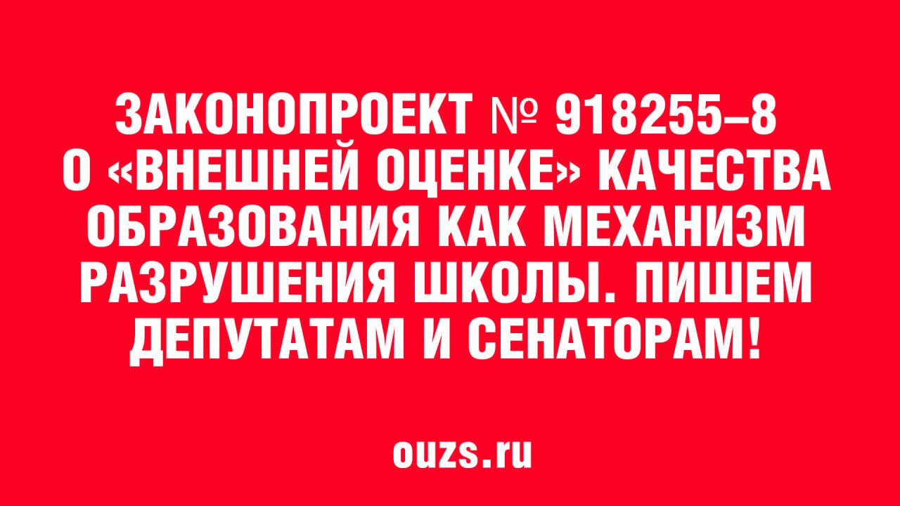 ❗️❗️ ❗️ЗАКОНОПРОЕКТ № 918255-8 О «ВНЕШНЕЙ ОЦЕНКЕ» КАЧЕСТВА ОБРАЗОВАНИЯ КАК МЕХАНИЗМ РАЗРУШЕНИЯ ШКОЛЫ. ПИШЕМ ДЕПУТАТАМ И СЕНАТОРАМ!