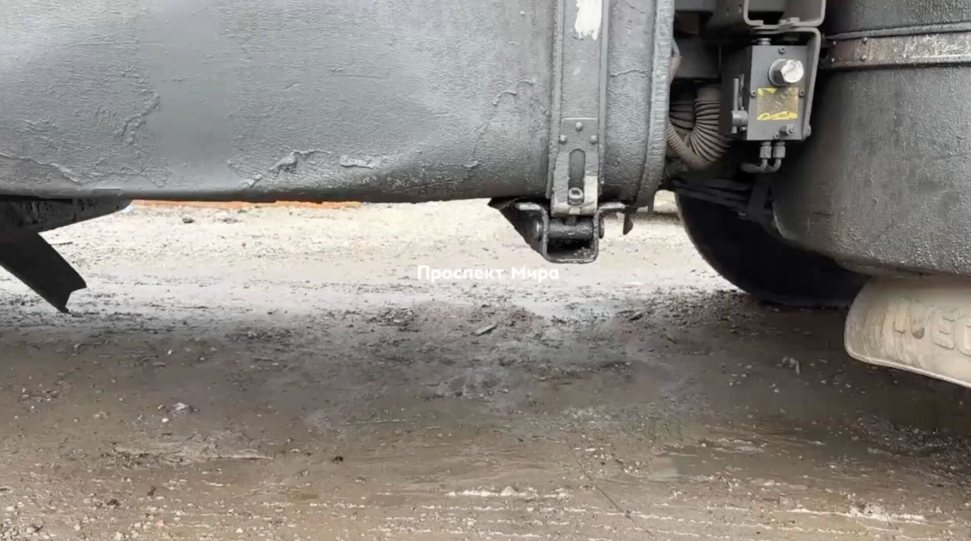 Вот так с одного из мусоровозом капает бензин: